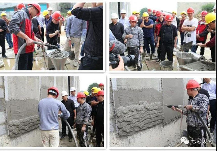 理論技術培訓 10月12日,“兩工三合”機械化施工培訓在貴陽市圓滿舉行。此次培訓由中國機噴施工聯盟、七彩貝殼香港集團有限公司、貴州金江匯節能材料有限公司聯合舉辦。本次培訓主要從理論和實操兩個方面開展,意在通過專業化的培訓,讓企業和一線工人加快施工模式的轉型。